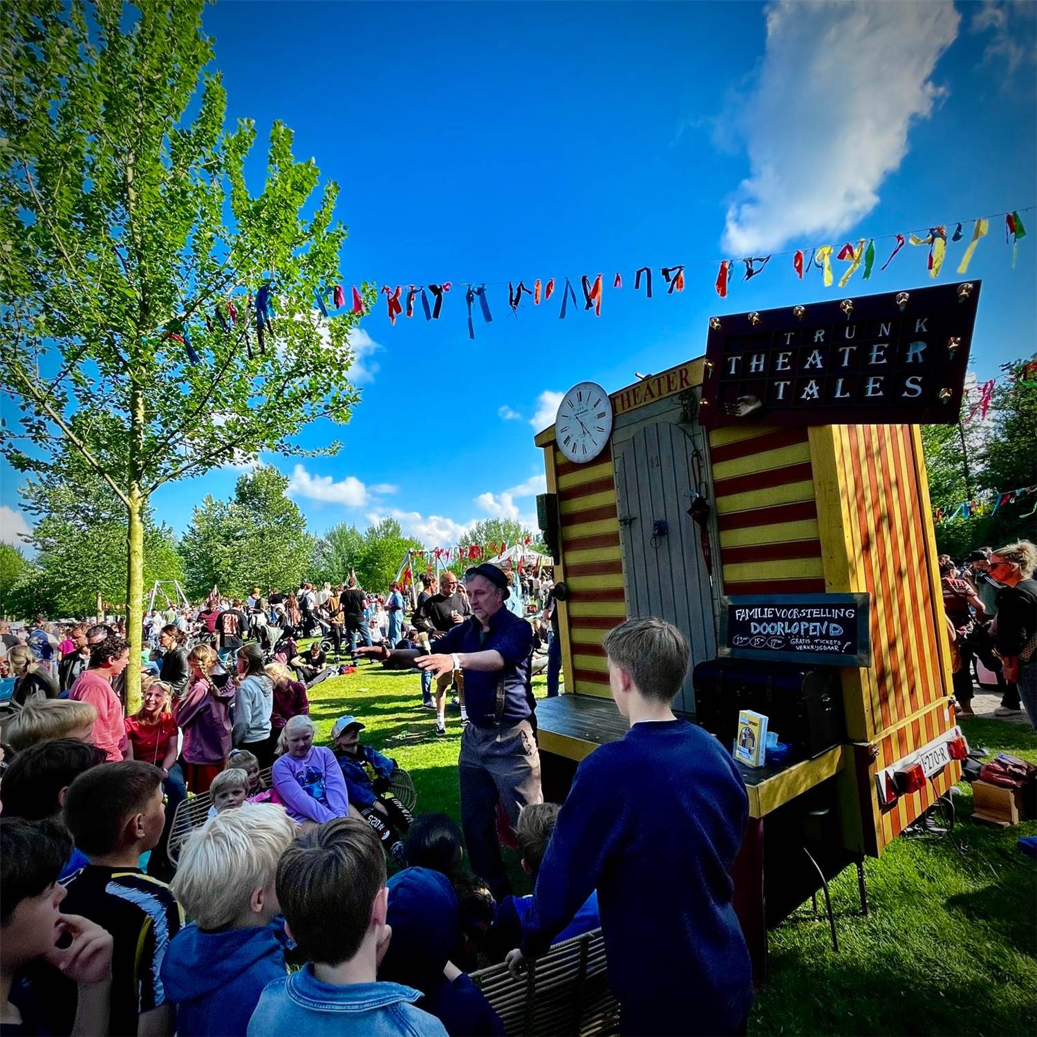 Foto's en video van de verhaaltjes buiten de theaterwagen (vanaf september 2023 spelen we alles in onze nieuwe theaterwagen):
